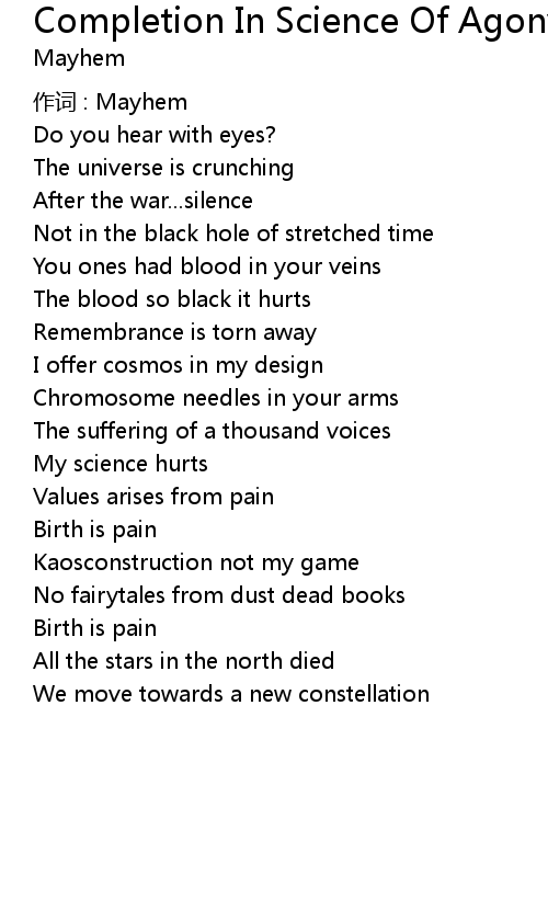 | 作词 : Mayhem | |