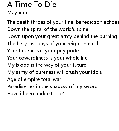 | Song | A Time To Die |