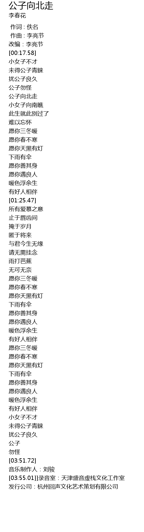 | [00:34.91] | 公子向北走 |