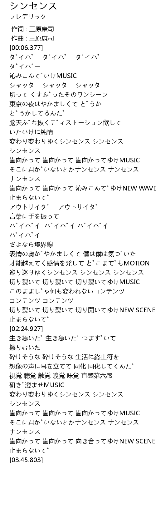 | [03:05.119] | 変わり変わりゆくシンセンス シンセンス シンセンス |
