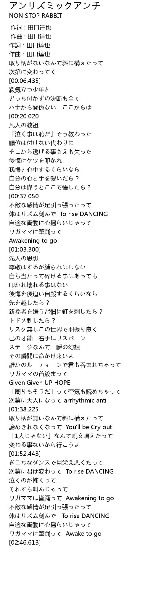 | [01:34.579] | 次第に大人になって arrhythmic anti |
