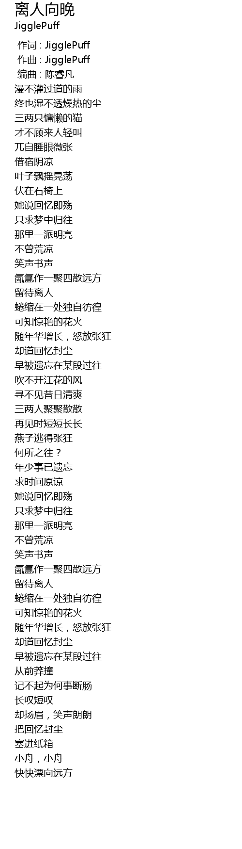 | [00:02.000] | 编曲 : 陈睿凡 |