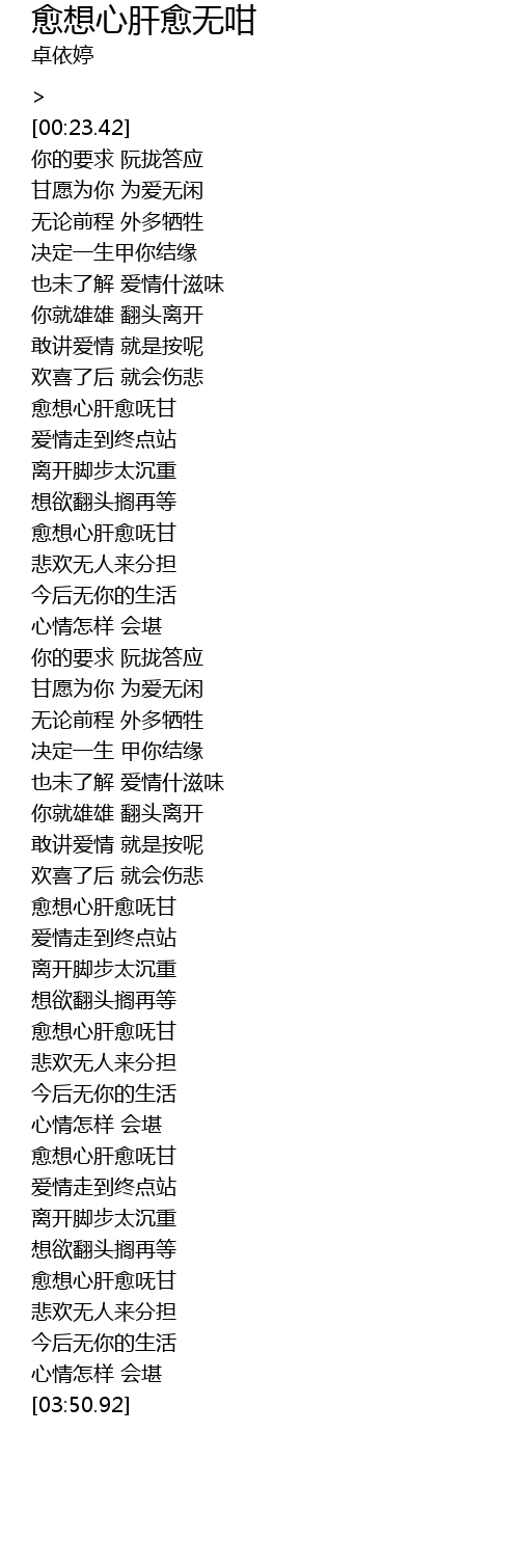 | [01:23.92] | 愈想心肝愈呒甘 |