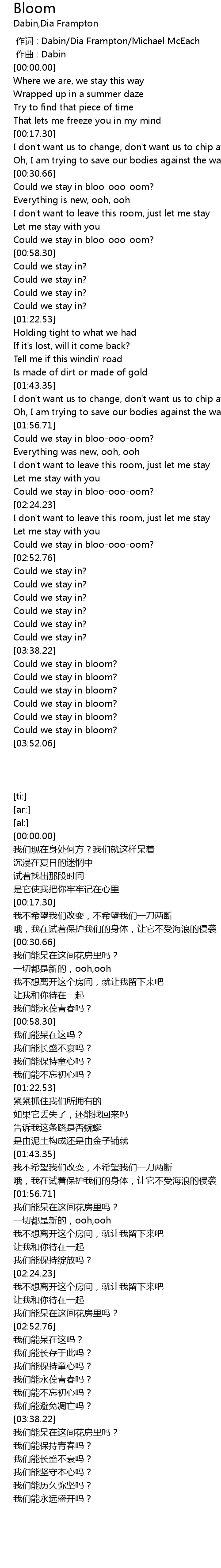 | [00:00.000] | zuò cí : Dabin Dia Frampton Michael McEach |