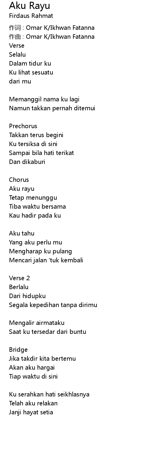 | 作词 : Omar K/Ikhwan Fatanna | |