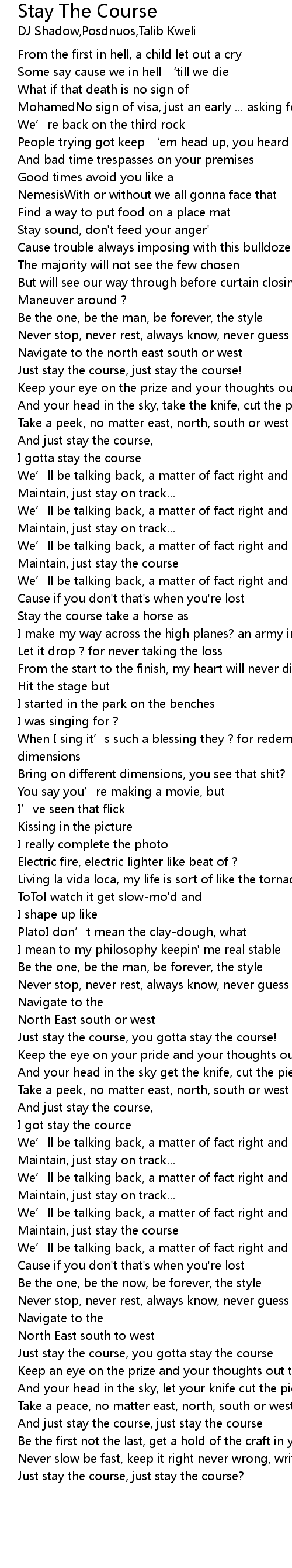 | Just stay the course, you gotta stay the course | |