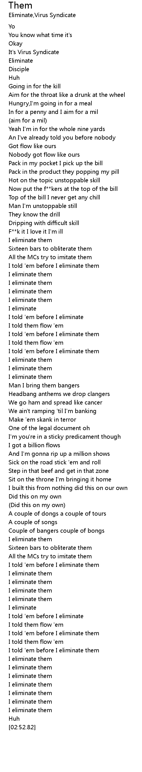 I told 'em before I eliminate them |
