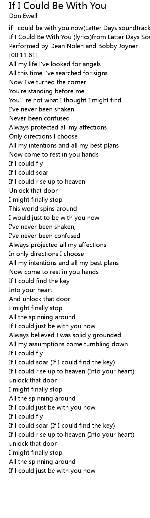 | [00:06.17] | If I Could Be With You lyrics from Latter Days Soundtrack |