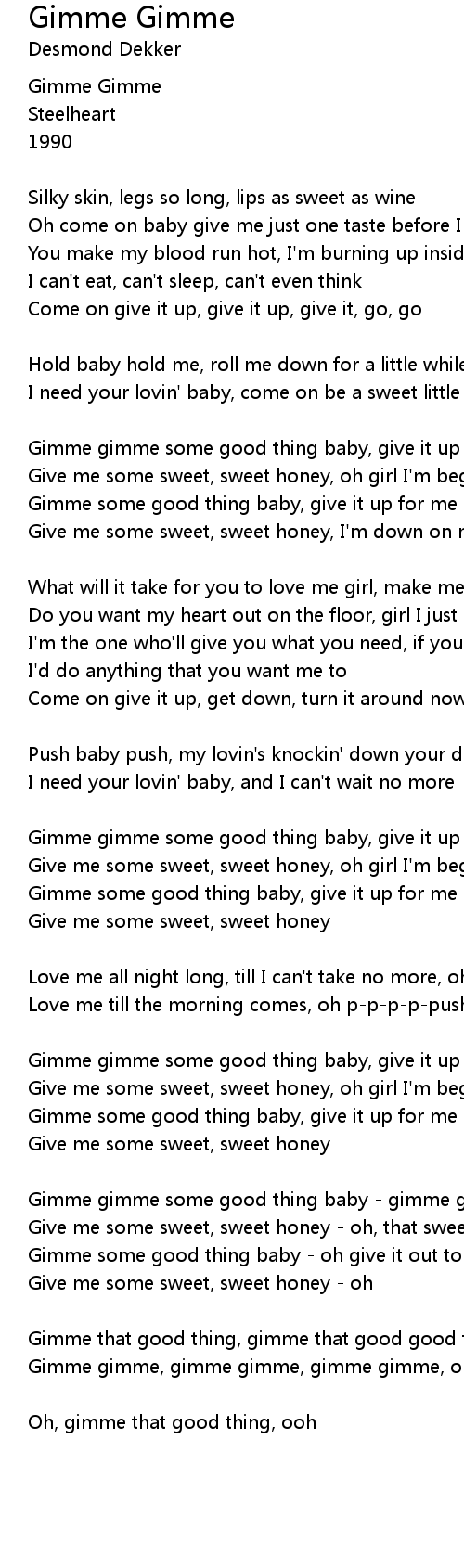 Gimme gimme some good thing baby - gimme gimme, gimme gimme