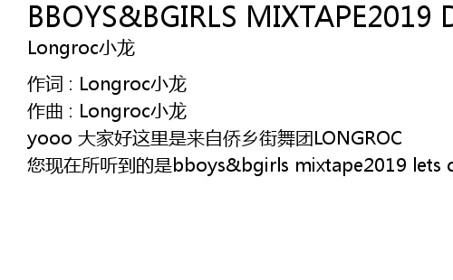 | yooo 大家好这里是来自侨乡街舞团LONGROC 您现在所听到的是bboys&bgirls mixtape2019 lets cheak!!! |