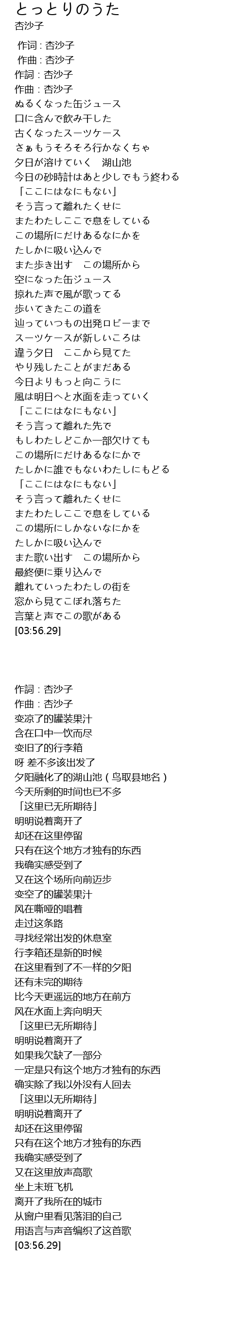 | [02:57.07] | たしかに誰でもないわたしにもどる |