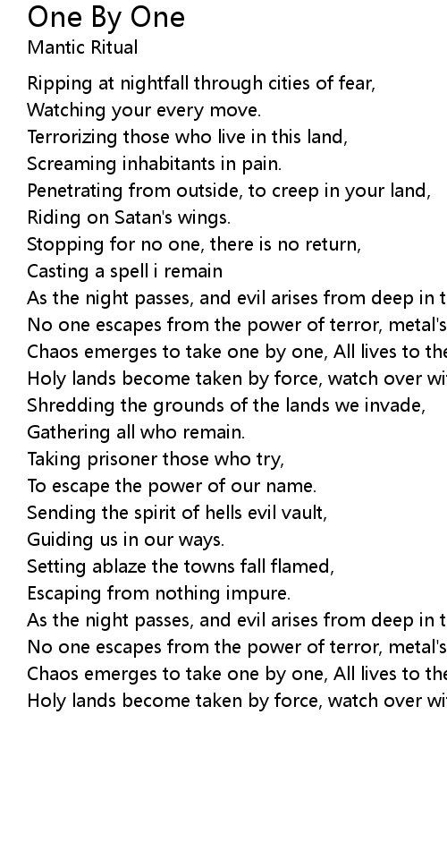 One By One Lyrics