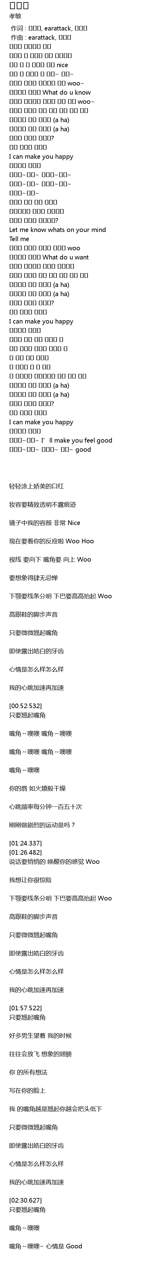| [02:35.110] | 입꼬리~이이~ I’ll make you feel good |