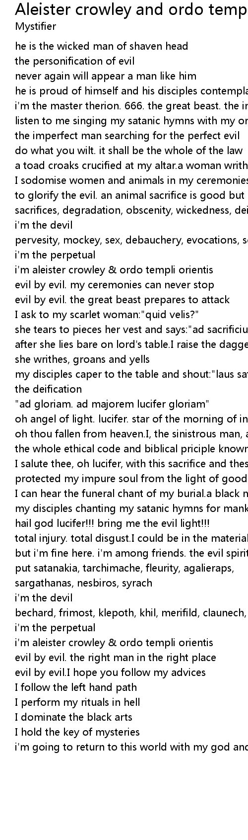| listen to me singing my satanic hymns with my ordo templi orientis | |