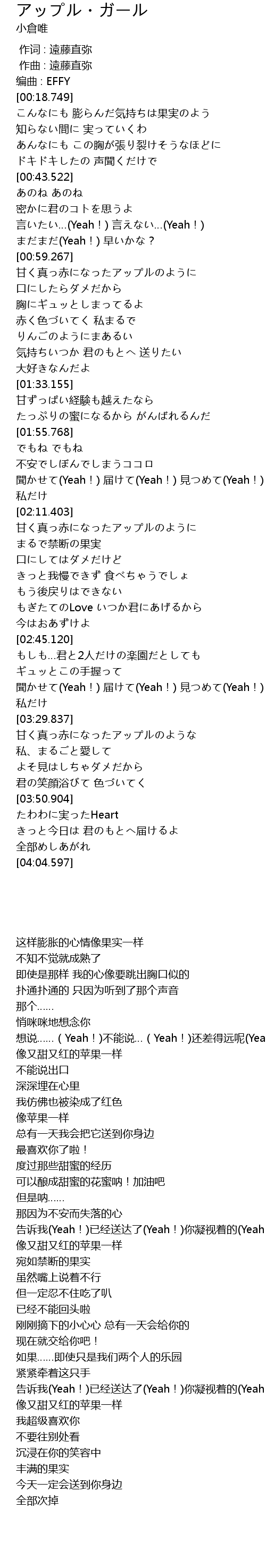 | [00:59.962] | 甘く真っ赤になったアップルのように |
