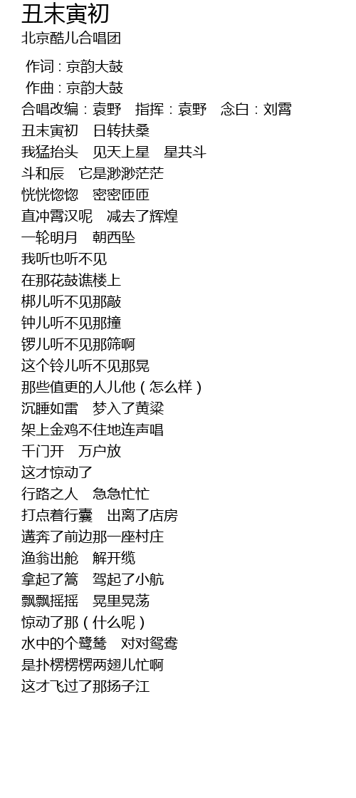 | [00:00.000] | 合唱改编:袁野 指挥:袁野 念白:刘霄 |