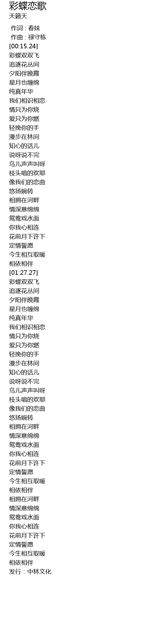 | [00:25.40] | cǎi dié shuāng shuāng fēi |