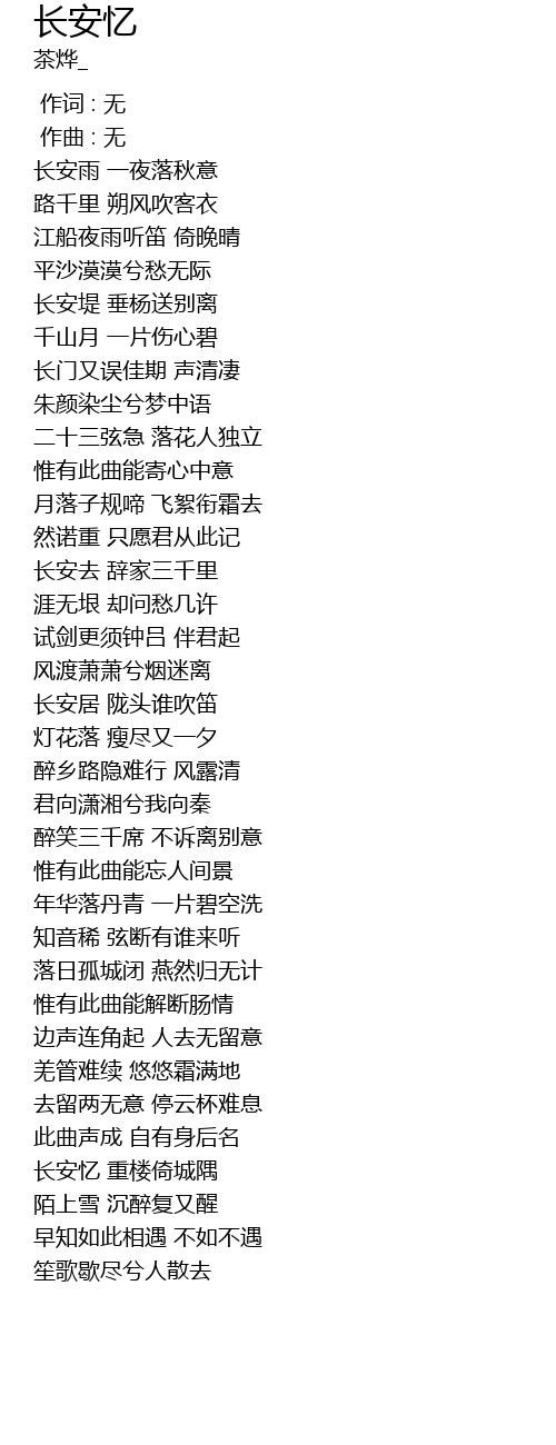 | [00:44.923] | 长安堤 垂杨送别离 |