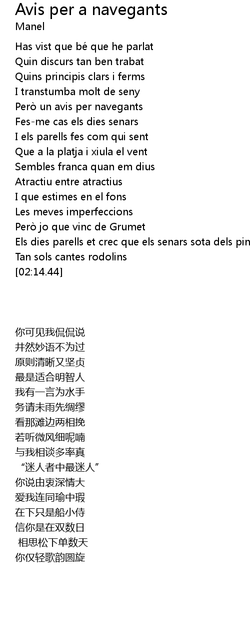 | [01:46.19] | Pero jo que vinc de Grumet |