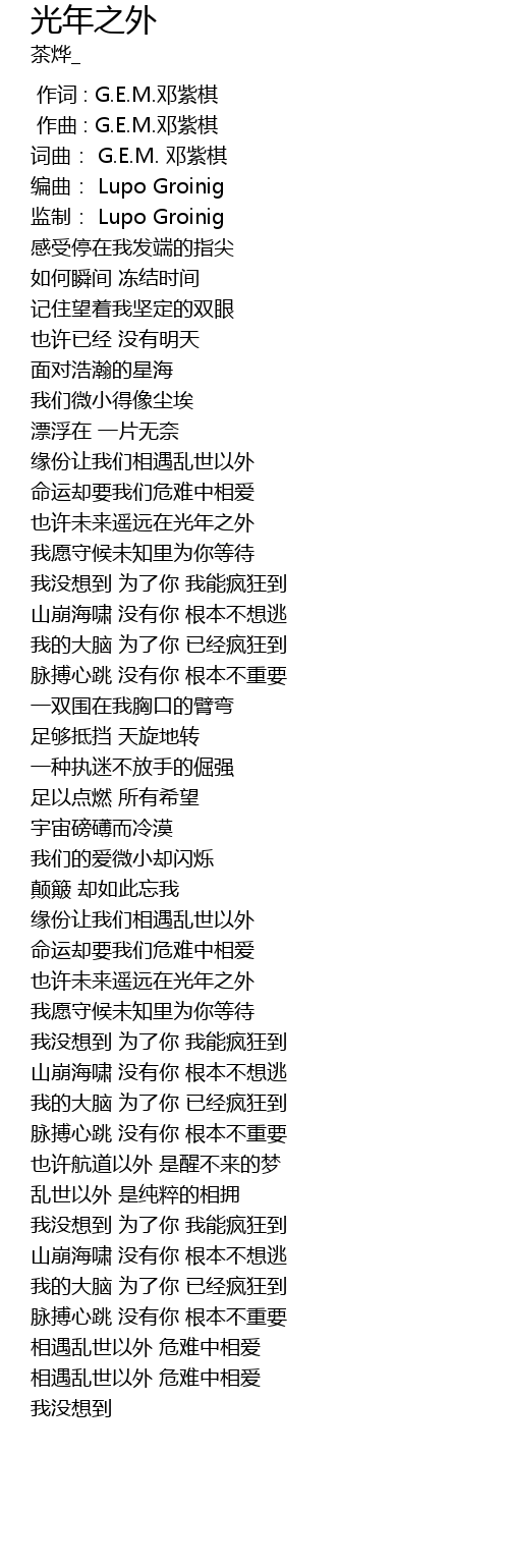 | [00:00.000] | 作词 : G.E.M.邓紫棋 |