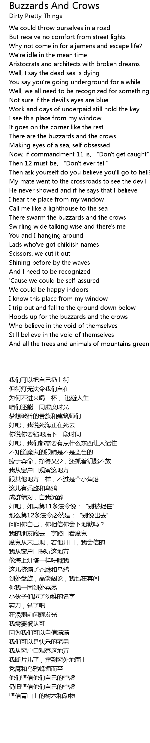 | Song | Buzzards And Crows |