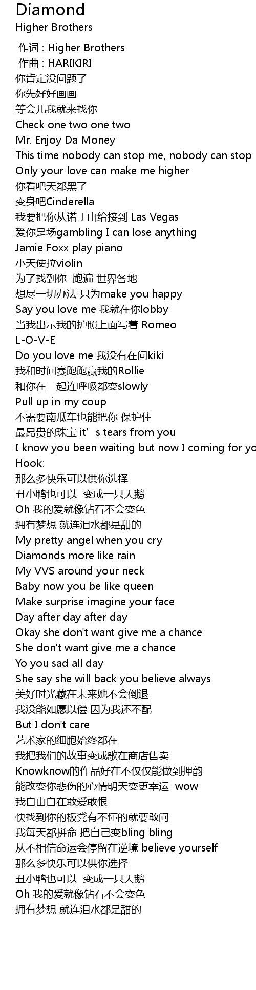 | [00:00.000] | 作词 : Higher Brothers |