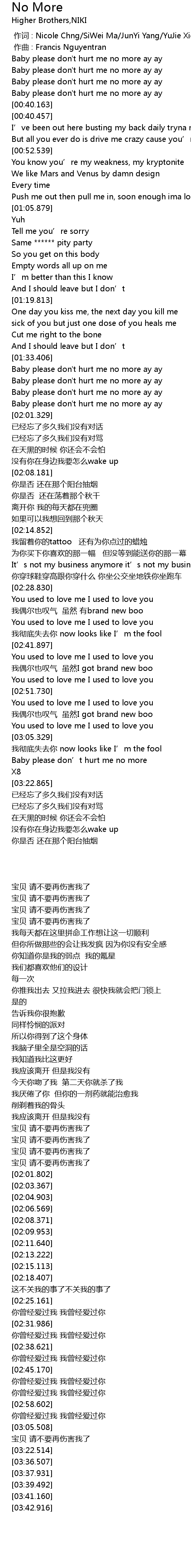 | [01:49.554] | Baby please don't hurt me no more ay ay |