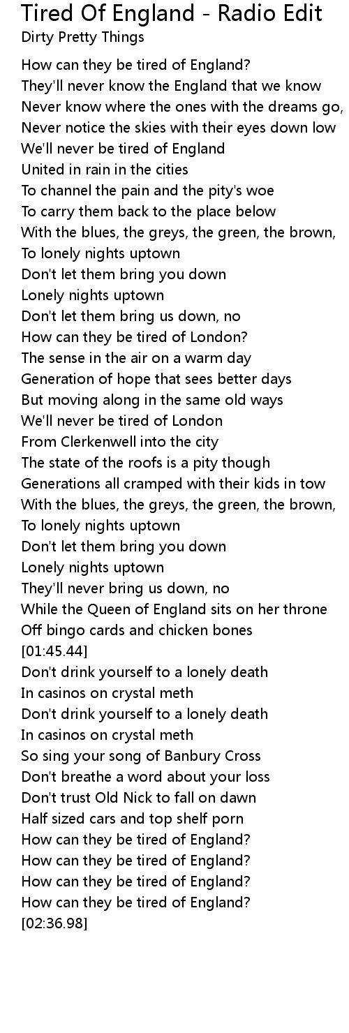 Tired Of England - Radio Edit Lyrics