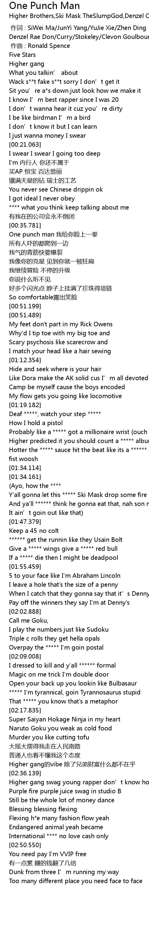| [01:28.739] | Hotter the ***** sauce hit the beat like its a ****** one punch man fist woosh |