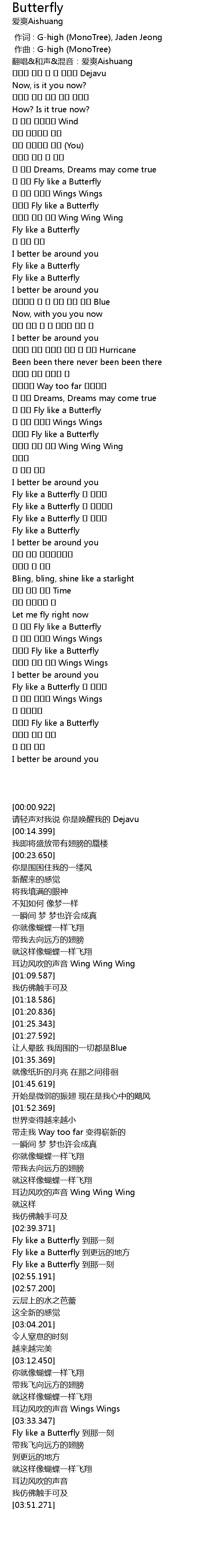 | [02:13.869] | 이대로 Fly like a Butterfly |