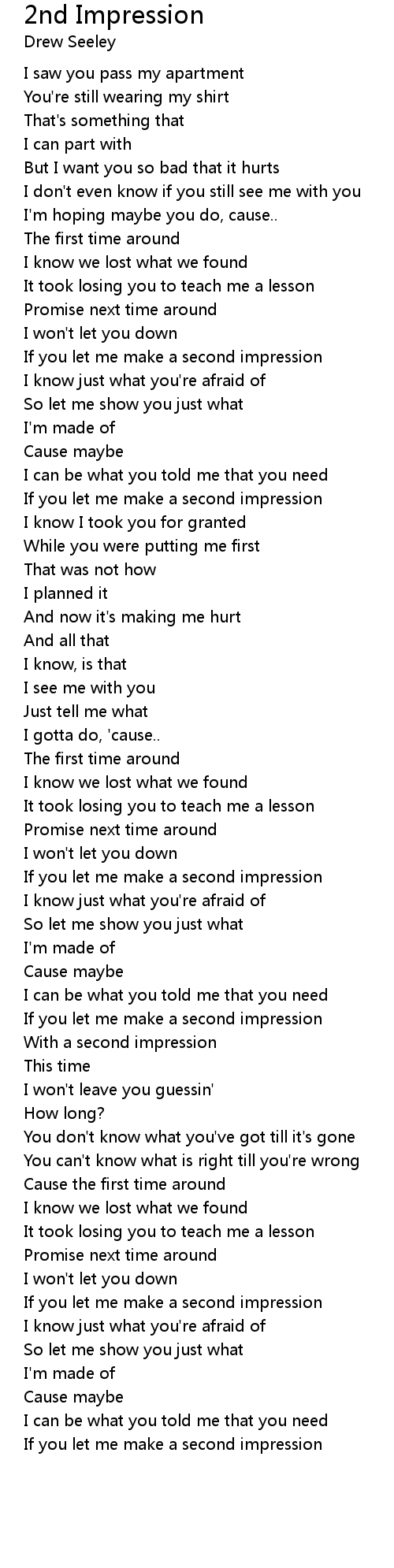 If you let me make a second impression |