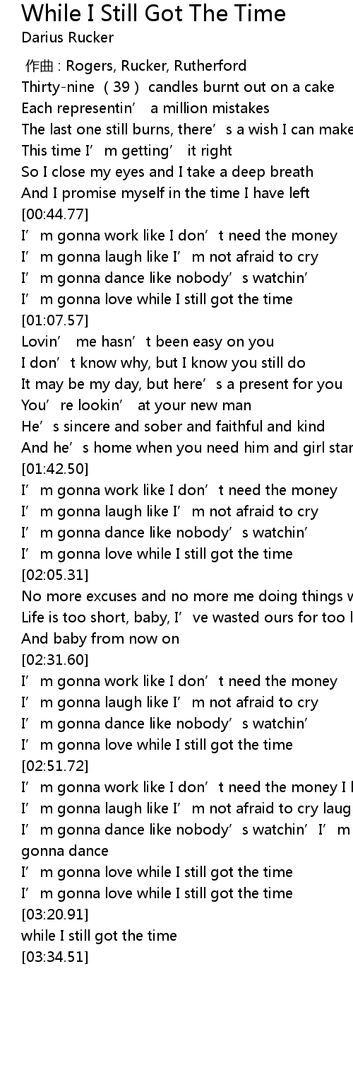 | [00:45.52] | I' m gonna work like I don' t need the money |