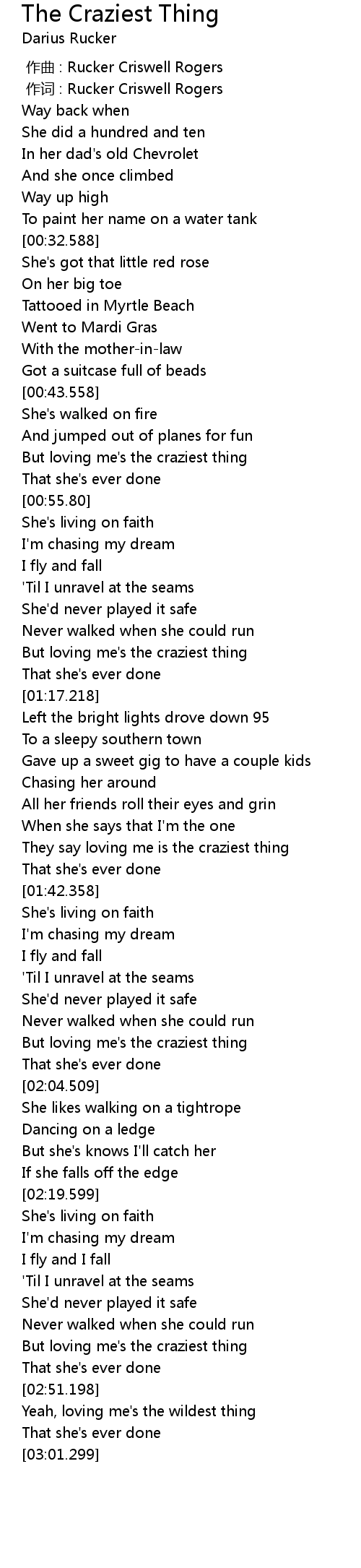 | [01:59.528] | But loving me' s the craziest thing |