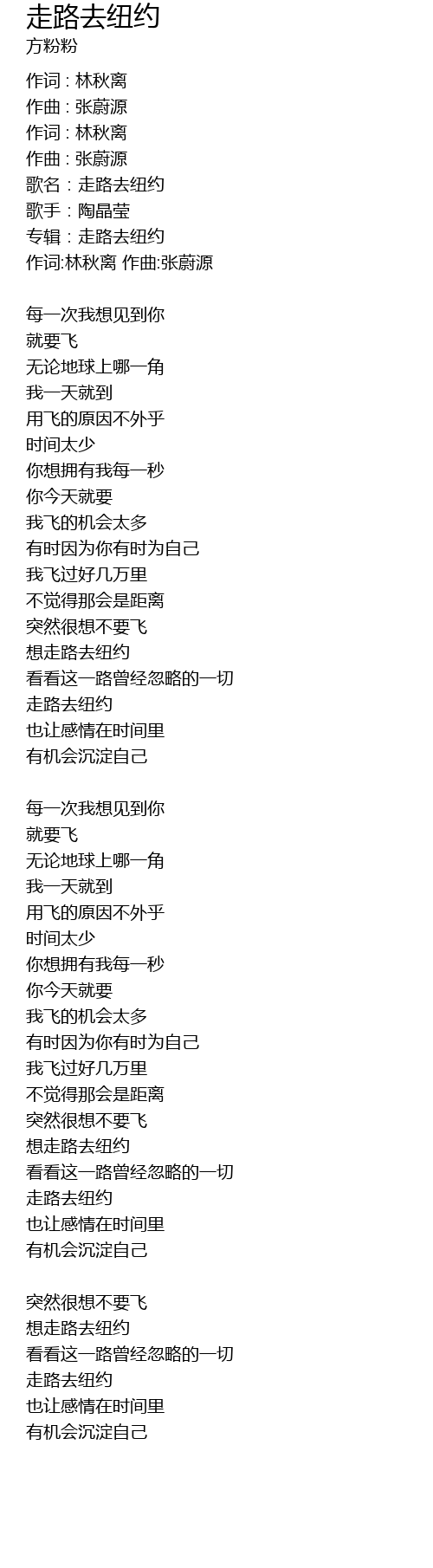 | gē míng: zǒu lù qù niǔ yuē | |