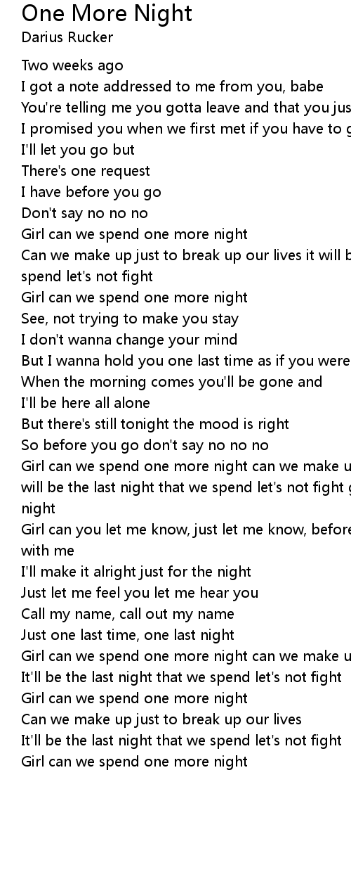 Girl can we spend one more night can we make up just to break up our lives it will be the last night that we spend let's not fight girl can we spend one more night |