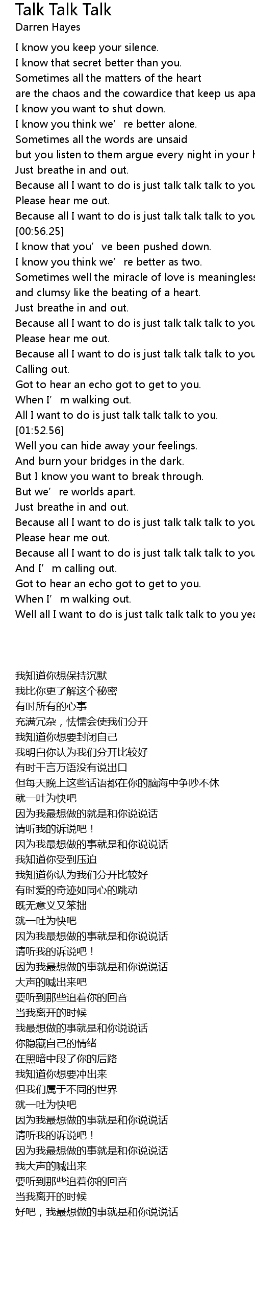 | [01:47.76] | All I want to do is just talk talk talk to you. |