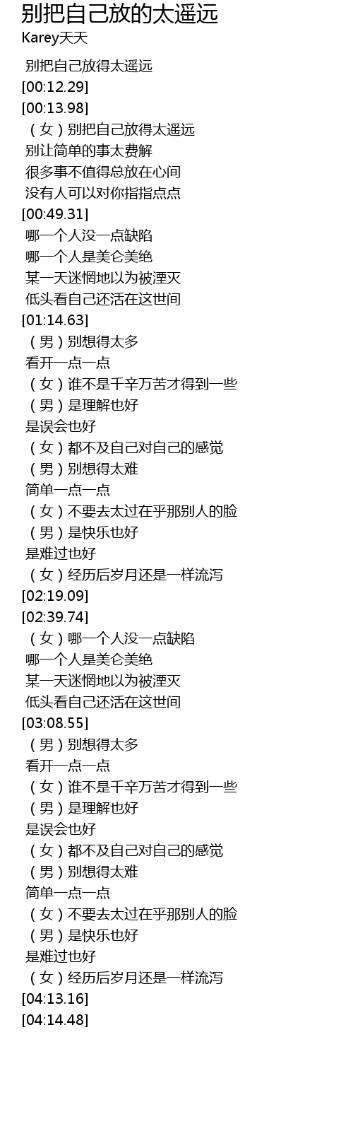 | [00:25.75] | (女)别把自己放得太遥远 |