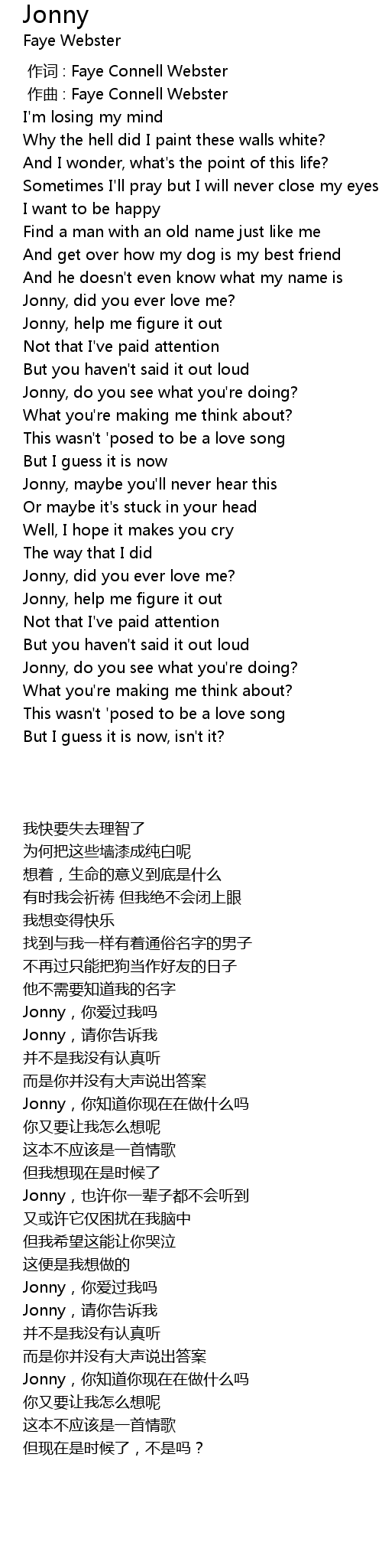 | [00:01.000] | 作曲 : Faye Connell Webster |
