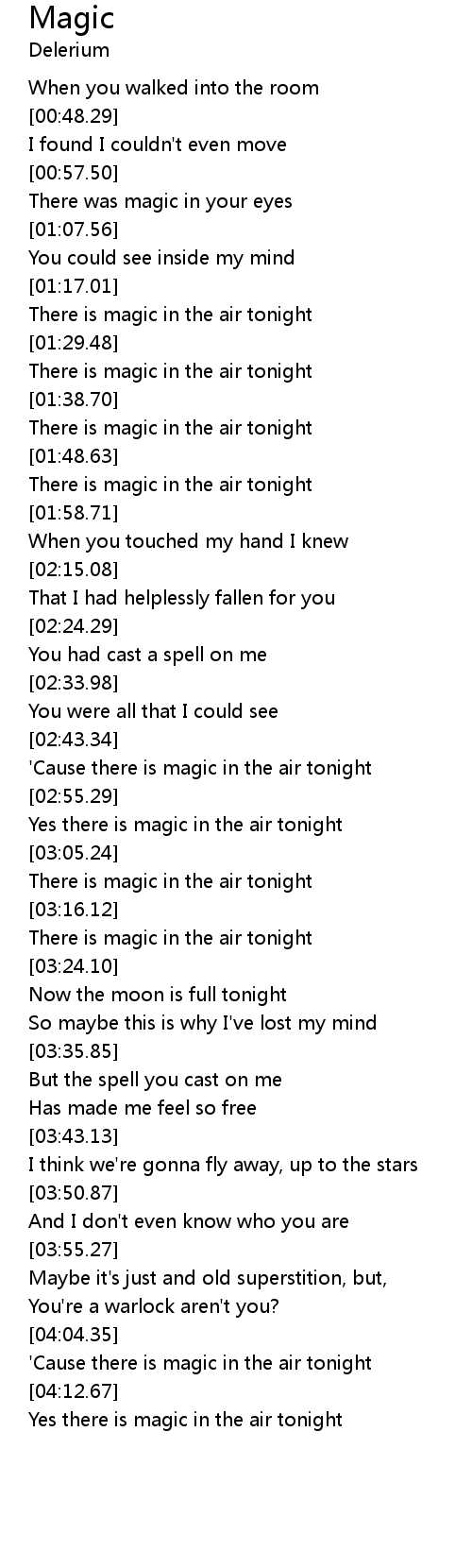 | [03:19.31] | There is magic in the air tonight |