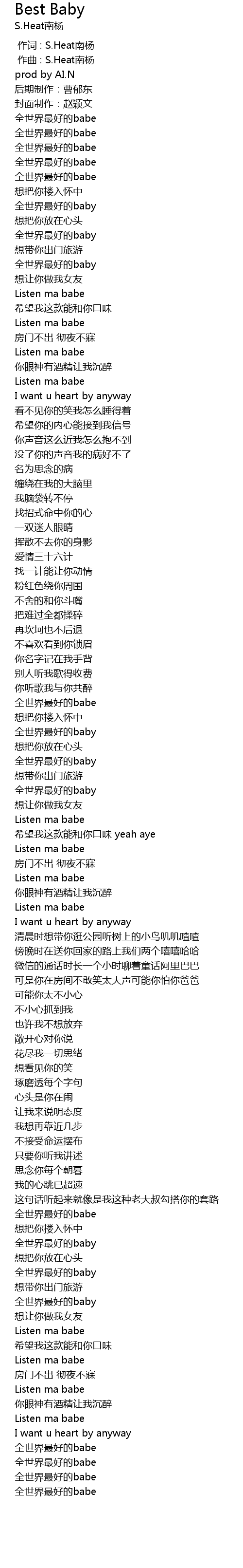 | [00:40.418] | quán shì jiè zuì hǎo de baby |