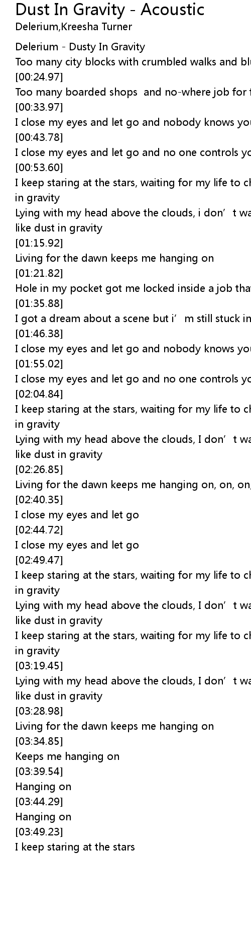 | [00:57.47] | I keep staring at the stars, waiting for my life to change like dust in gravity |