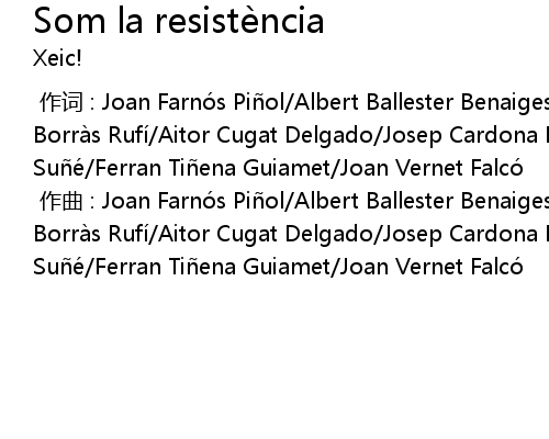 [00:00.000] zuò qǔ : Joan Farnó s Pi ol Albert Ballester Benaiges Romá n Borrà s Rufí Aitor Cugat Delgado Josep Cardona Pallares Jordà n Rius Sué Ferran Ti ena Guiamet Joan Vernet Falcó