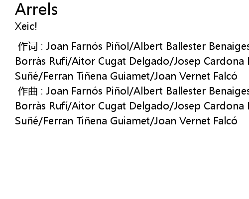 [00:00.000] 作曲 : Joan Farnós Piñol/Albert Ballester Benaiges/Román Borràs Rufí/Aitor Cugat Delgado/Josep Cardona Pallares/Jordàn Rius Suñé/Ferran Tiñena Guiamet/Joan Vernet Falcó