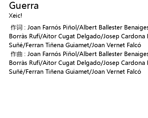 | [00:00.000] | zuò qǔ : Joan Farnó s Pi ol Albert Ballester Benaiges Romá n Borrà s Rufí Aitor Cugat Delgado Josep Cardona Pallares Jordà n Rius Sué Ferran Ti ena Guiamet Joan Vernet Falcó |