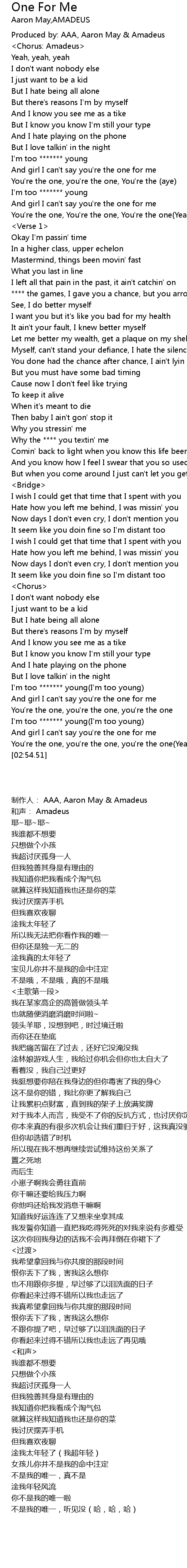 | [00:06.06] | Produced by: AAA, Aaron May & Amadeus |