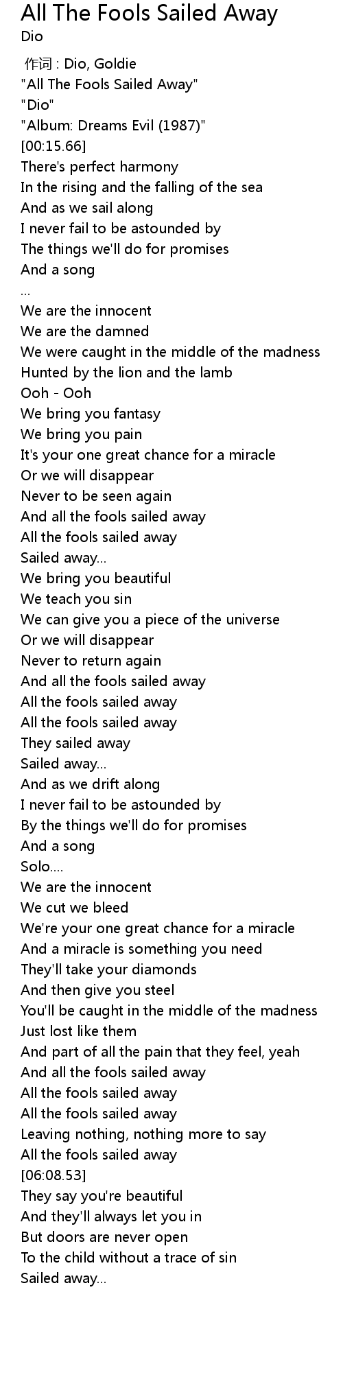 | [06:00.59] | All the fools sailed away |