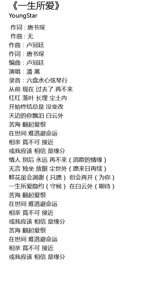 | [02:47.292] | yī shēng suǒ ài yǐn yuē shǒu hòu zài bái yún wài qī dài |
