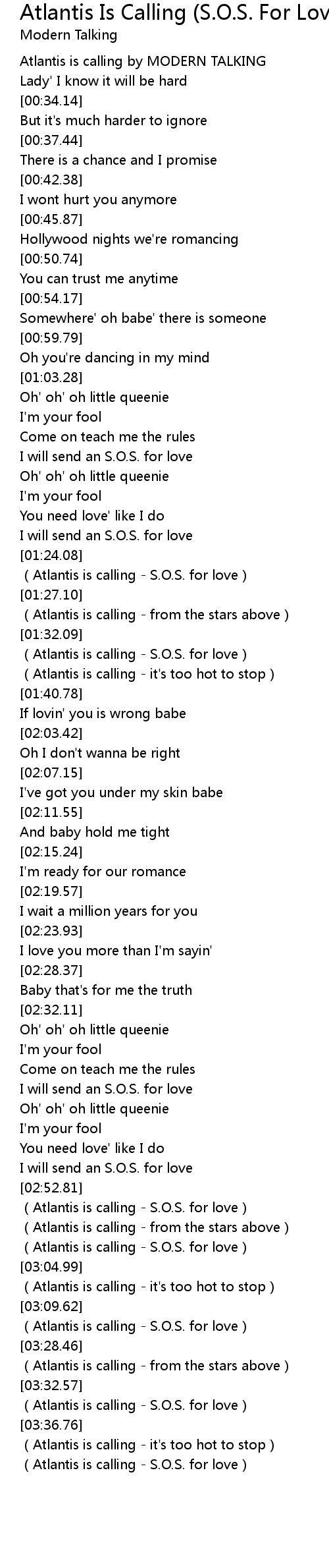 | [00:03.60] | Atlantis is calling by MODERN TALKING |
