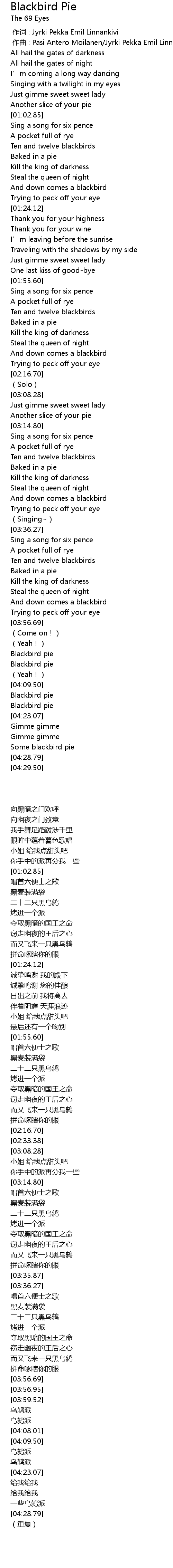 | [00:01.000] | zuo qu : Pasi Antero Moilanen Jyrki Pekka Emil Linnankivi |