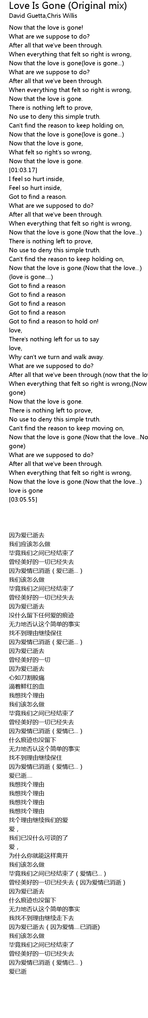 Now that the love is gone.(Now that the love...Now that the love is gone) |